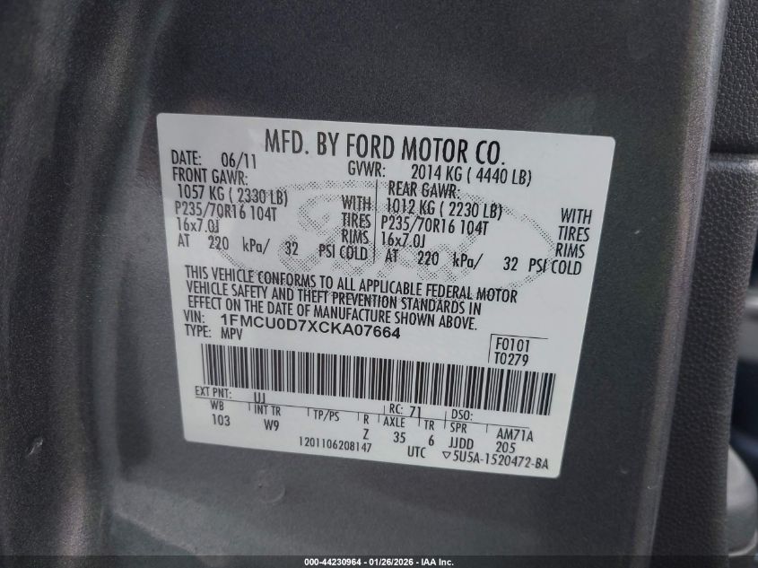 VIN: 1FMCU0D7XCKA07664