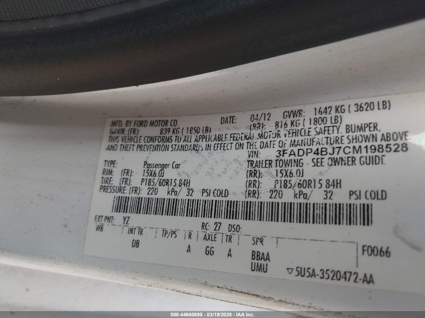 VIN: 3FADP4BJ7CM198528
