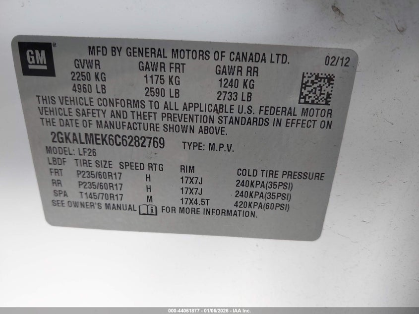 VIN: 2GKALMEK6C6282769