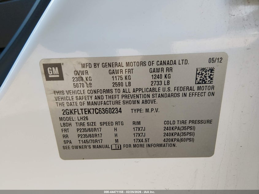 VIN: 2GKFLTEK7C6360234