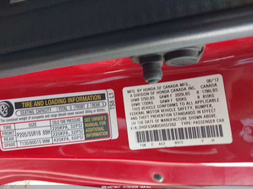 VIN: 2HGFG3A80CH557262