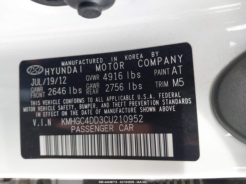 VIN: KMHGC4DD3CU210952