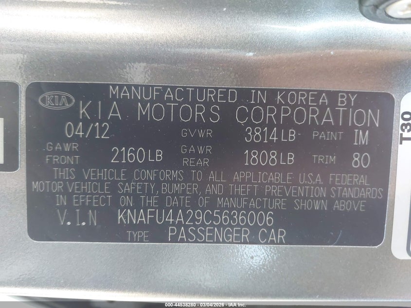 VIN: KNAFU4A29C5636006