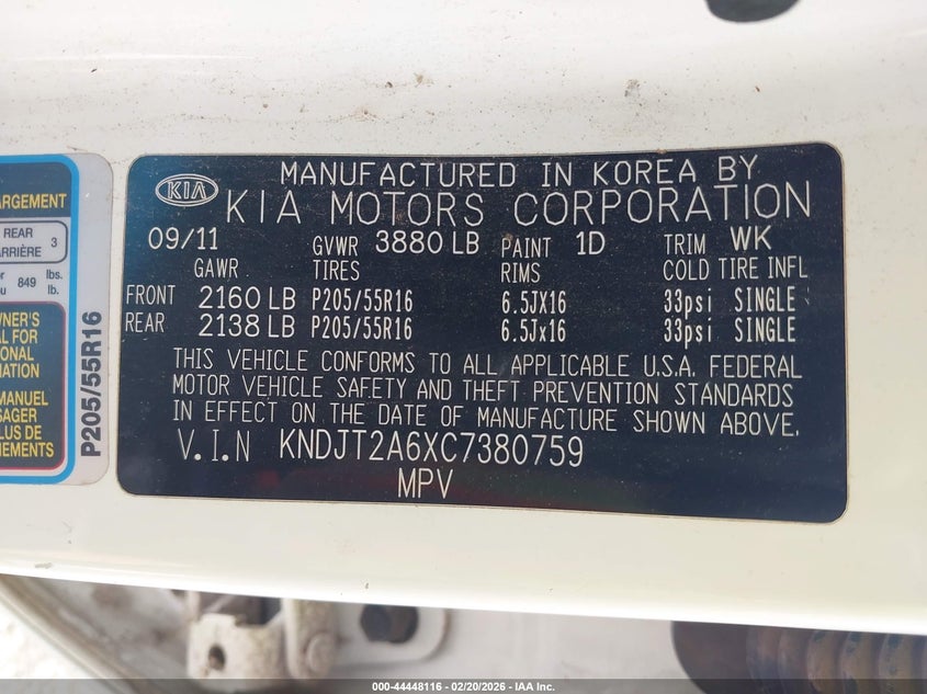 VIN: KNDJT2A6XC7380759