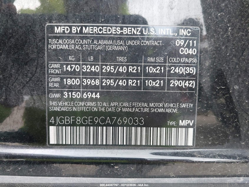 VIN: 4JGBF8GE9CA769033