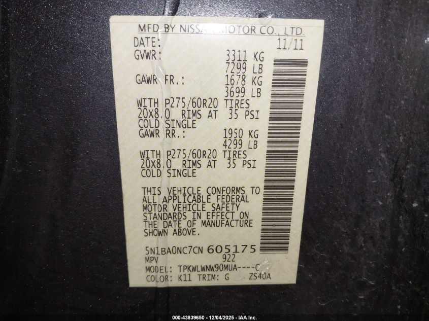 VIN: 5N1BA0NC7CN605175