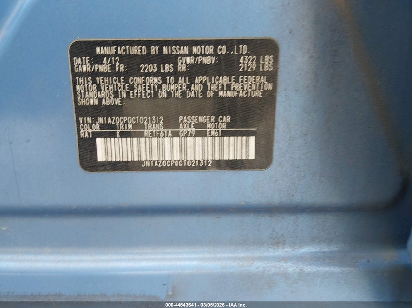 VIN: JN1AZ0CP0CT021312