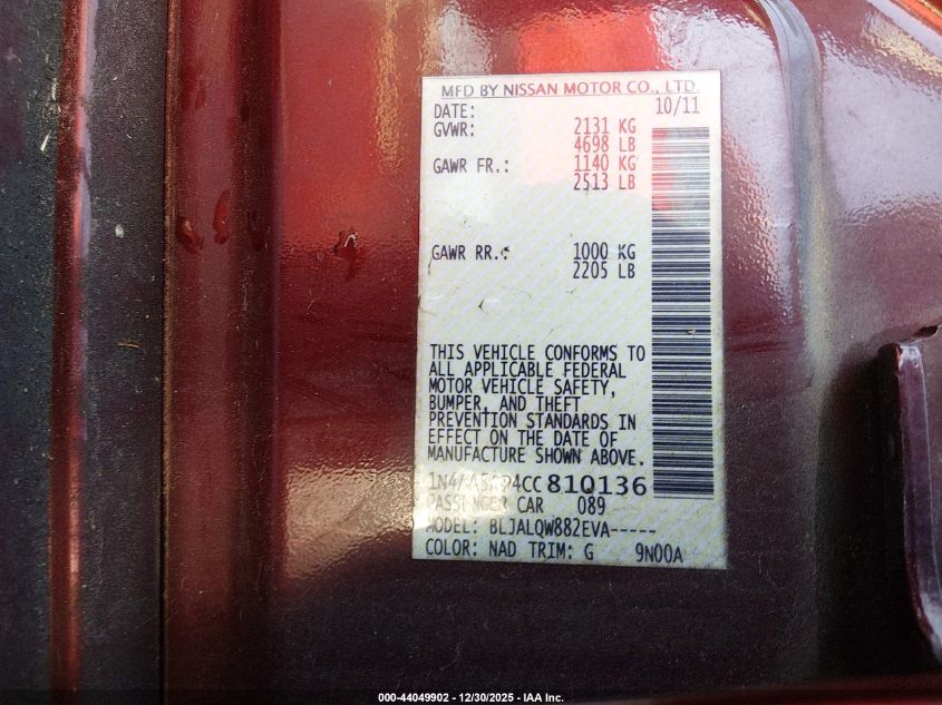 VIN: 1N4AA5AP4CC810136