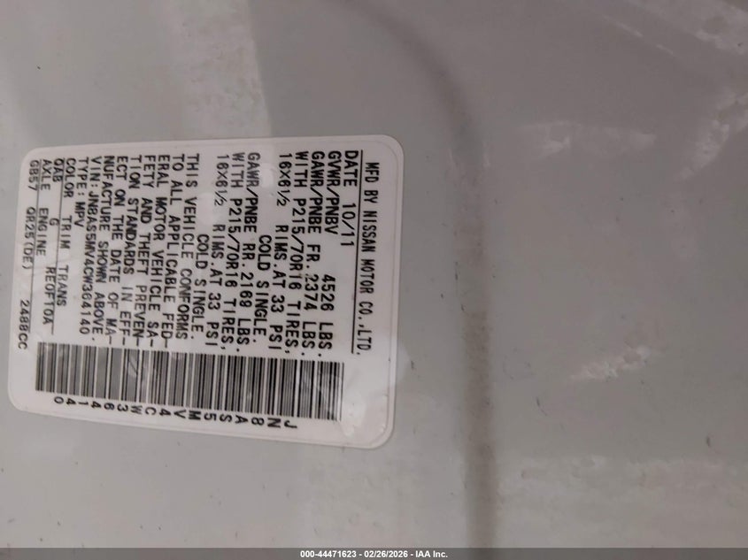 VIN: JN8AS5MV4CW364140