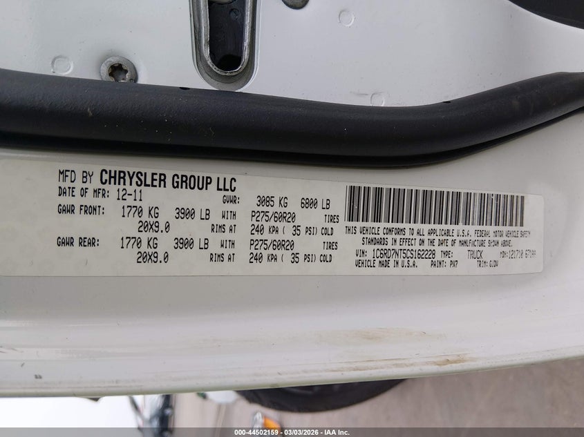 VIN: 1C6RD7NT5CS162228