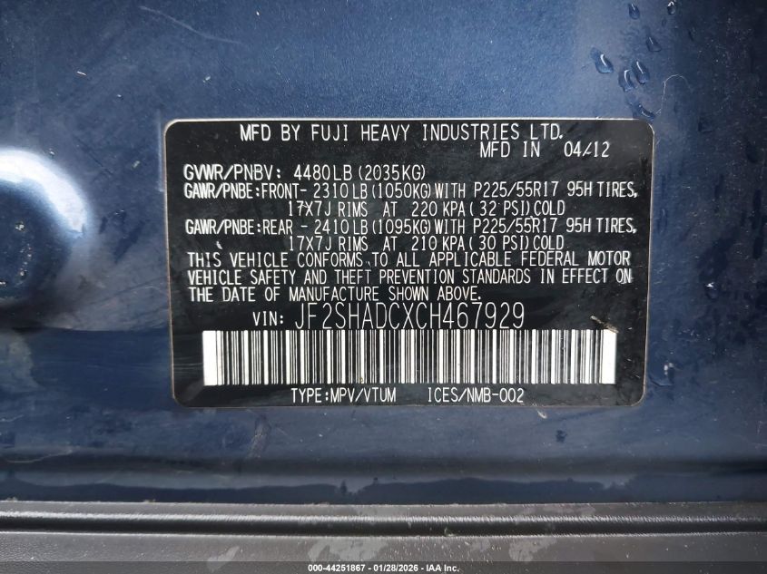 VIN: JF2SHADCXCH467929