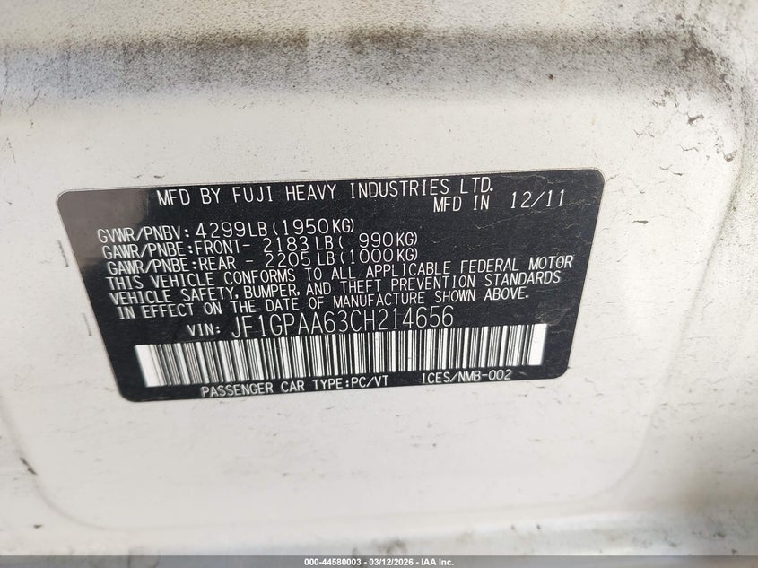Variklio tipas:2.0L H-4 DOHC, VVT, 148HP
