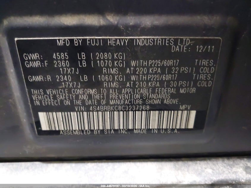 VIN: 4S4BRBKC8C3237268