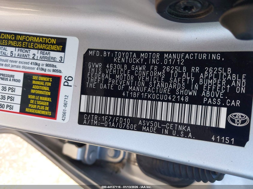 VIN: 4T1BF1FK0CU042148