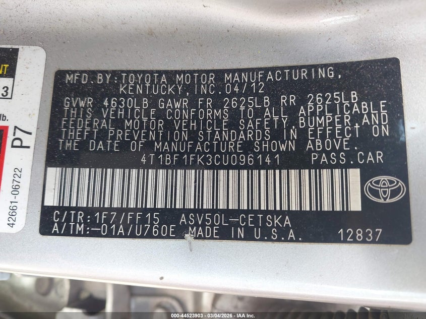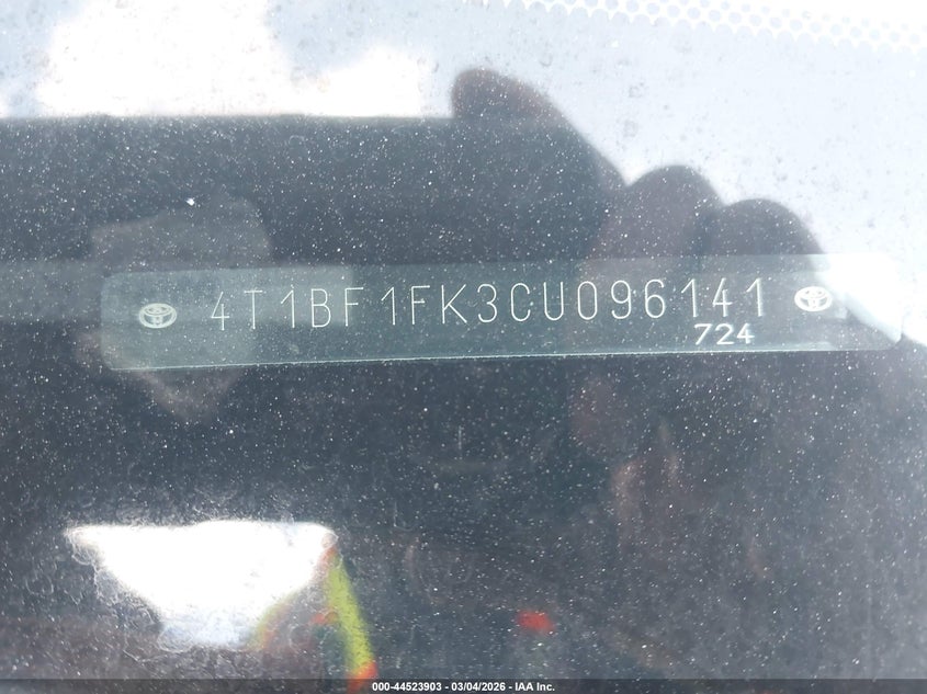 VIN: 4T1BF1FK3CU096141