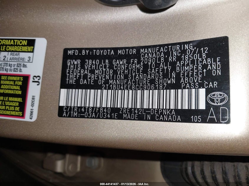 VIN: 2T1BU4EE8CC906187
