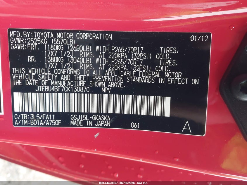 VIN: JTEBU4BF7CK130870