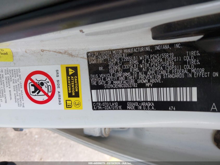 VIN: 5TDYK3EH8CS052782