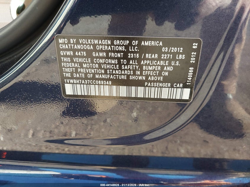 VIN: 1VWBH7A37CC069349