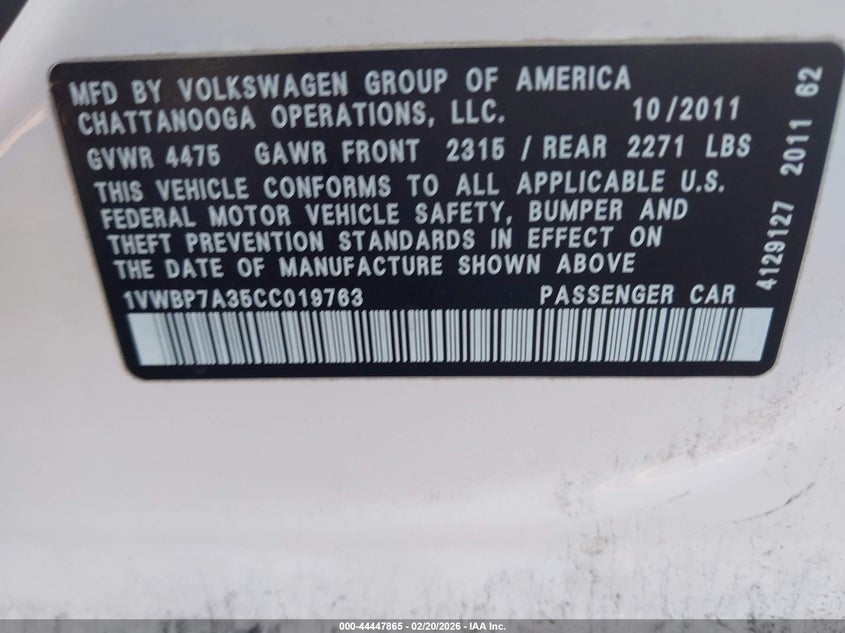 VIN: 1VWBP7A35CC019763