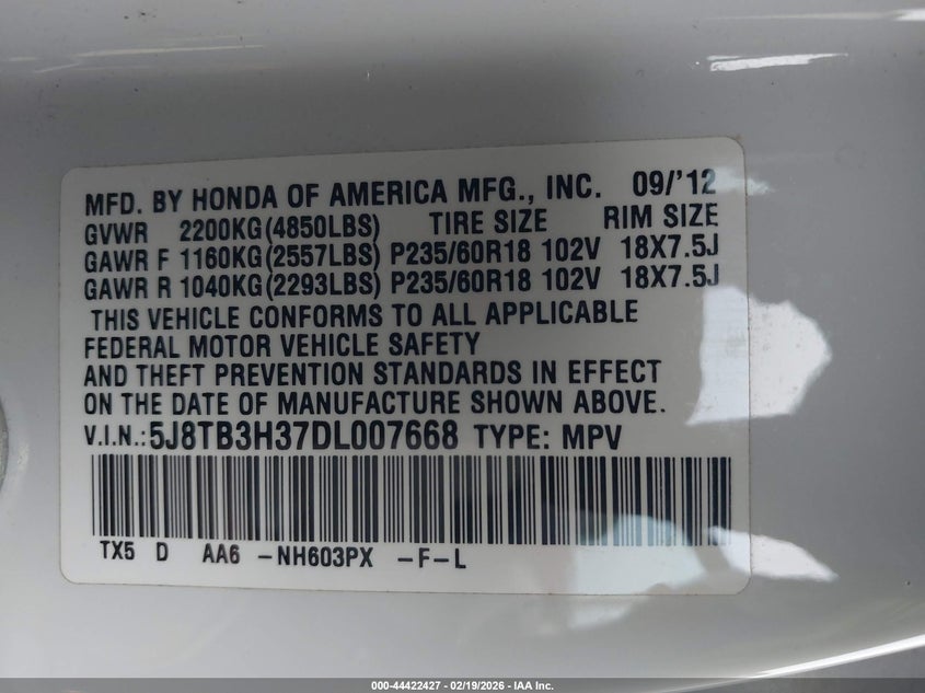VIN: 5J8TB3H37DL007668