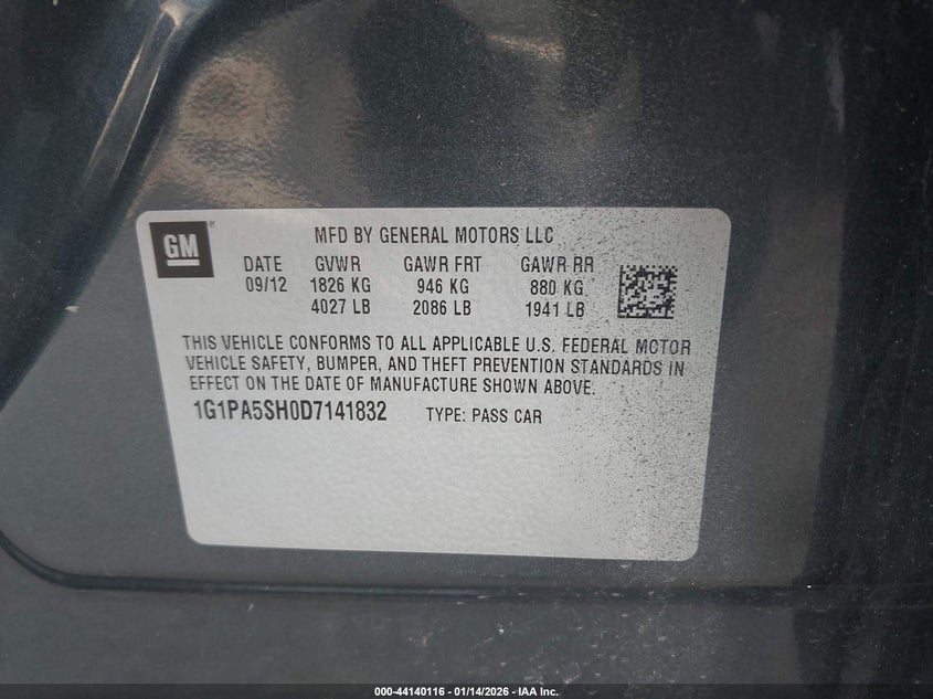 VIN: 1G1PA5SH0D7141832