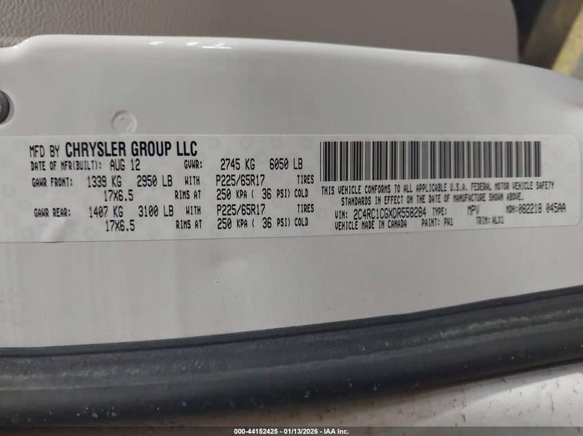 VIN: 2C4RC1CGXDR558284