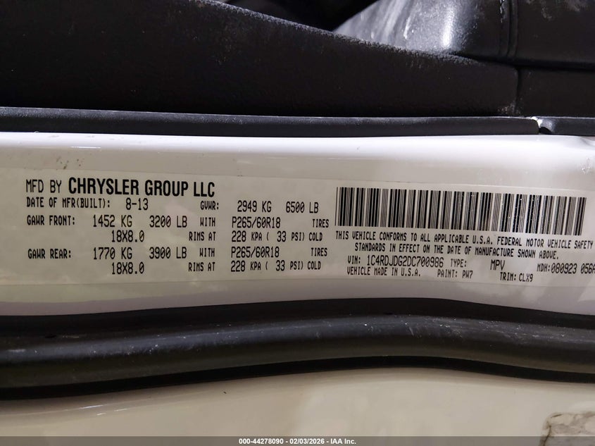 VIN: 1C4RDJDG2DC700986