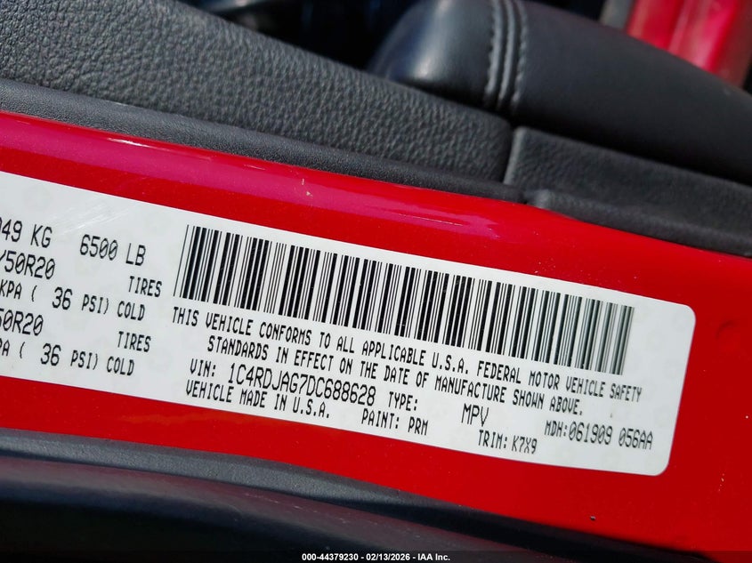 VIN: 1C4RDJAG7DC688628