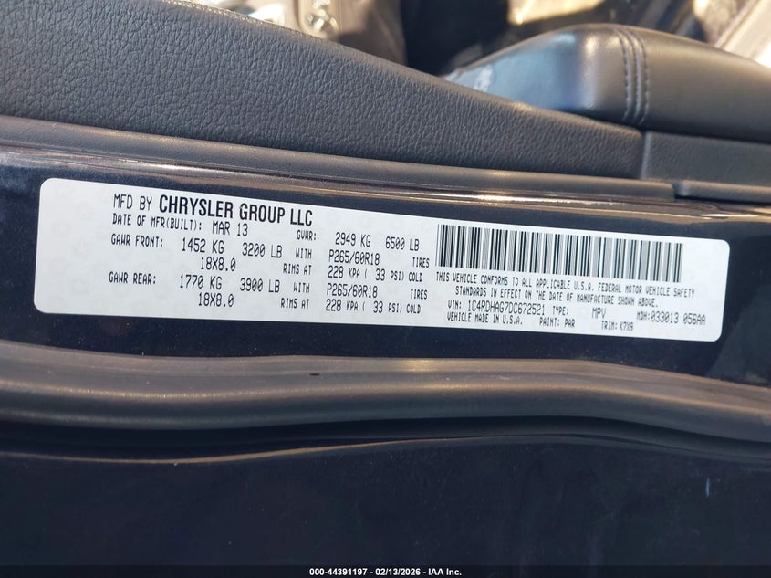 VIN: 1C4RDHAG7DC672521