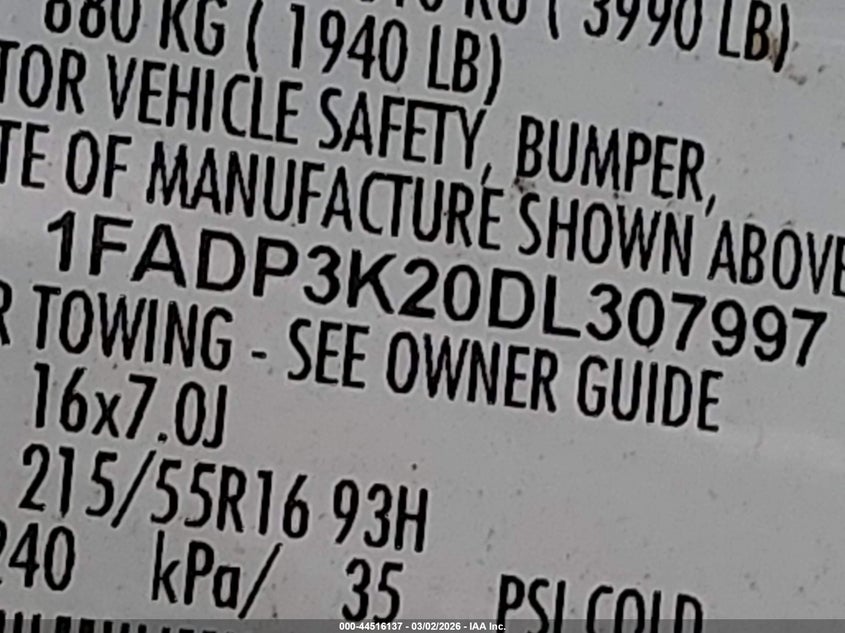 VIN: 1FADP3K20DL307997