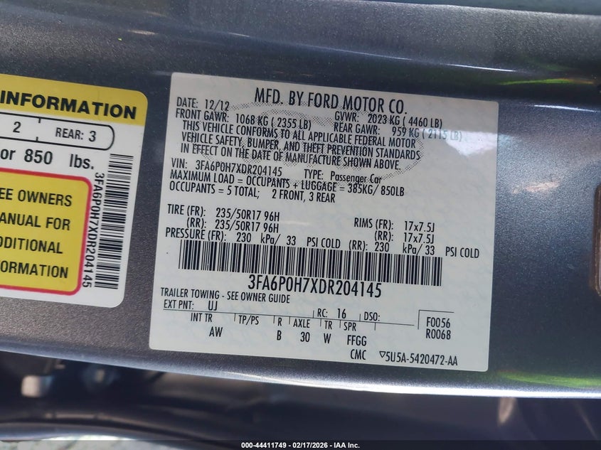 VIN: 3FA6P0H7XDR204145