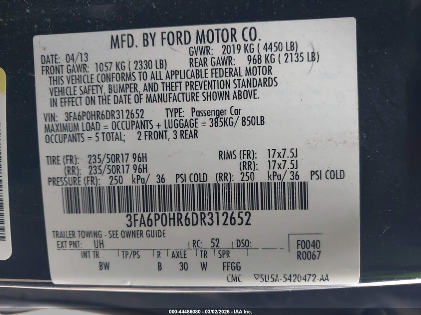 VIN: 3FA6P0HR6DR312652