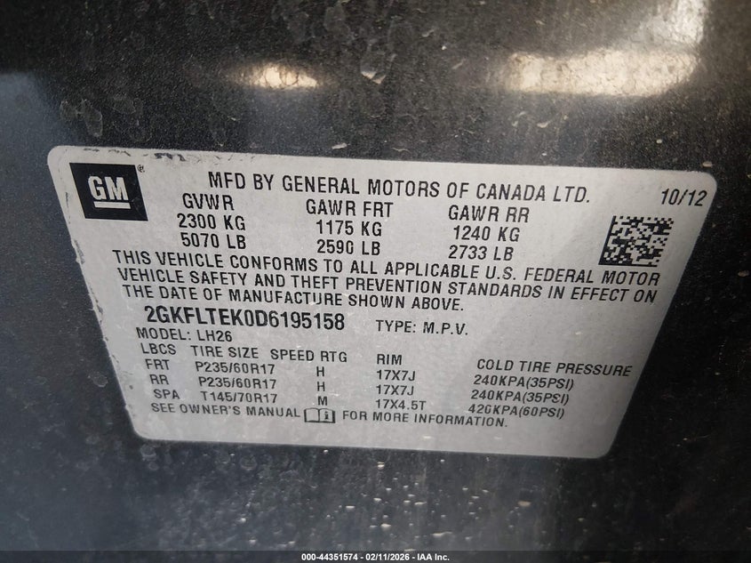 VIN: 2GKFLTEK0D6195158