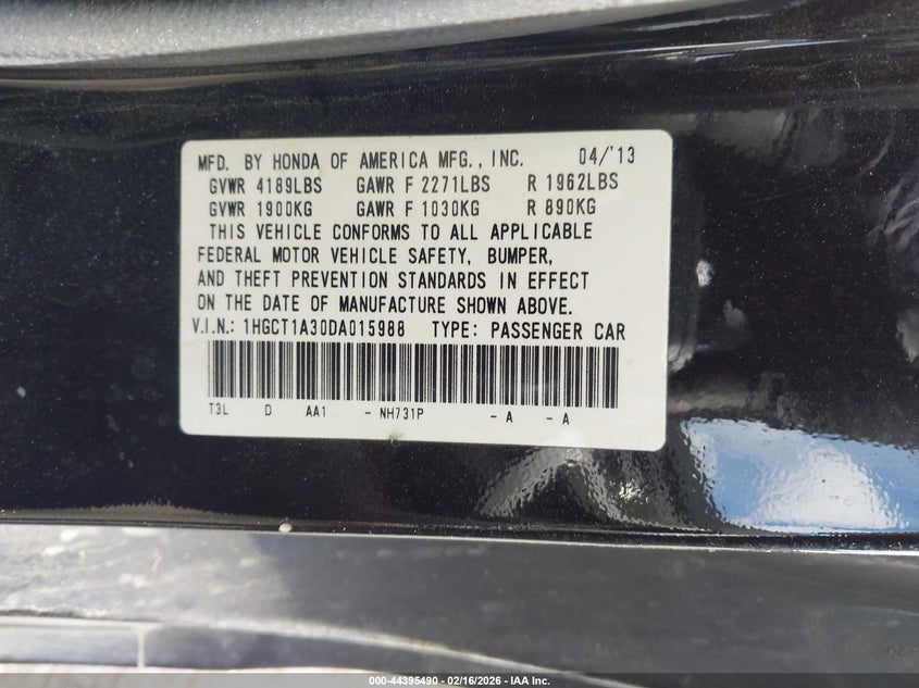 VIN: 1HGCT1A30DA015988