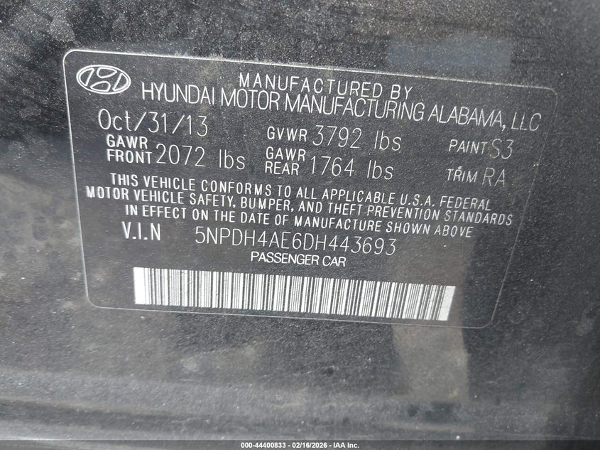 VIN: 5NPDH4AE6DH443693
