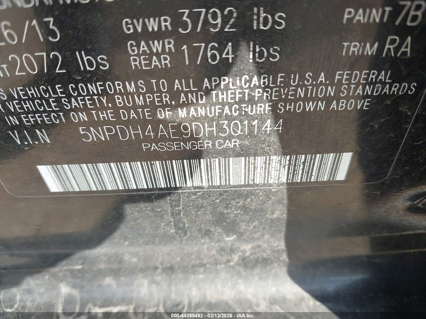 VIN: 5NPDH4AE9DH301144