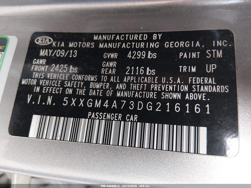 VIN: 5XXGM4A73DG216161