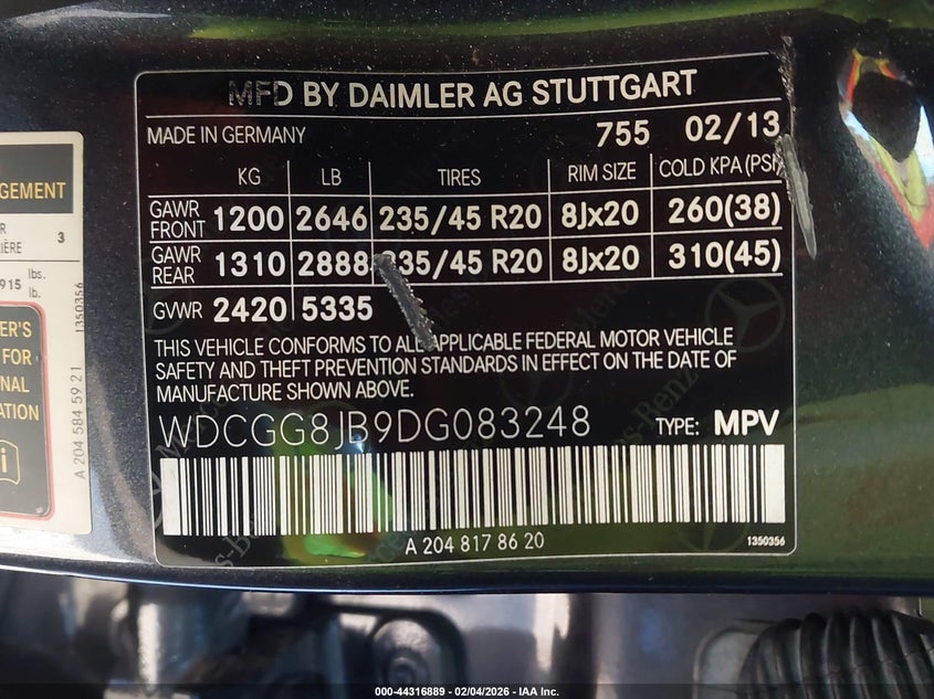 VIN: WDCGG8JB9DG083248
