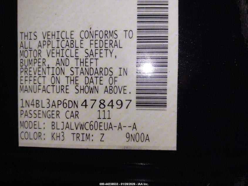 VIN: 1N4BL3AP6DN478497