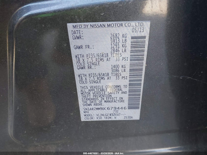 VIN: 5N1AR2MM9DC679446