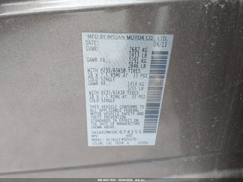 VIN: 5N1AR2MN5DC674155