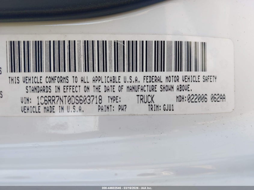 VIN: 1C6RR7NT0DS603718