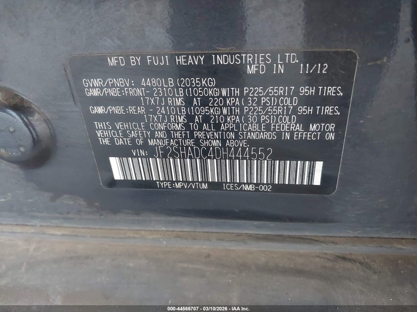 VIN: JF2SHADC4DH444552