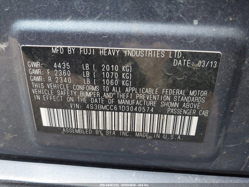 VIN: 4S3BMCC61D3040574