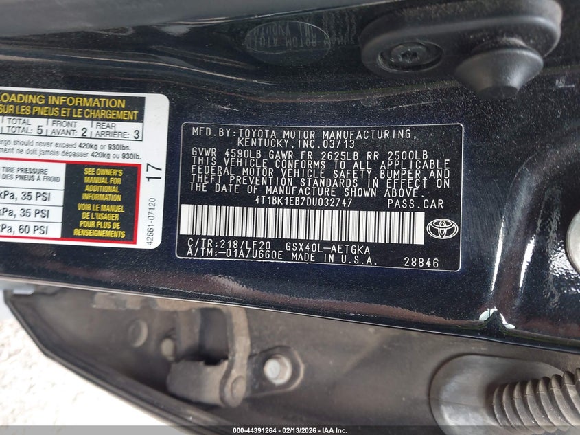 VIN: 4T1BK1EB7DU032747
