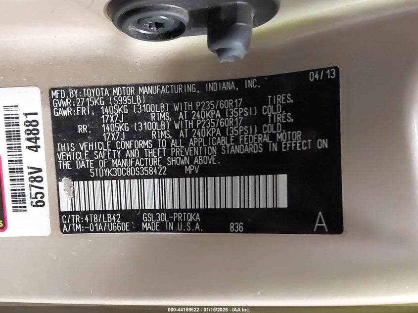 VIN: 5TDYK3DC8DS358422