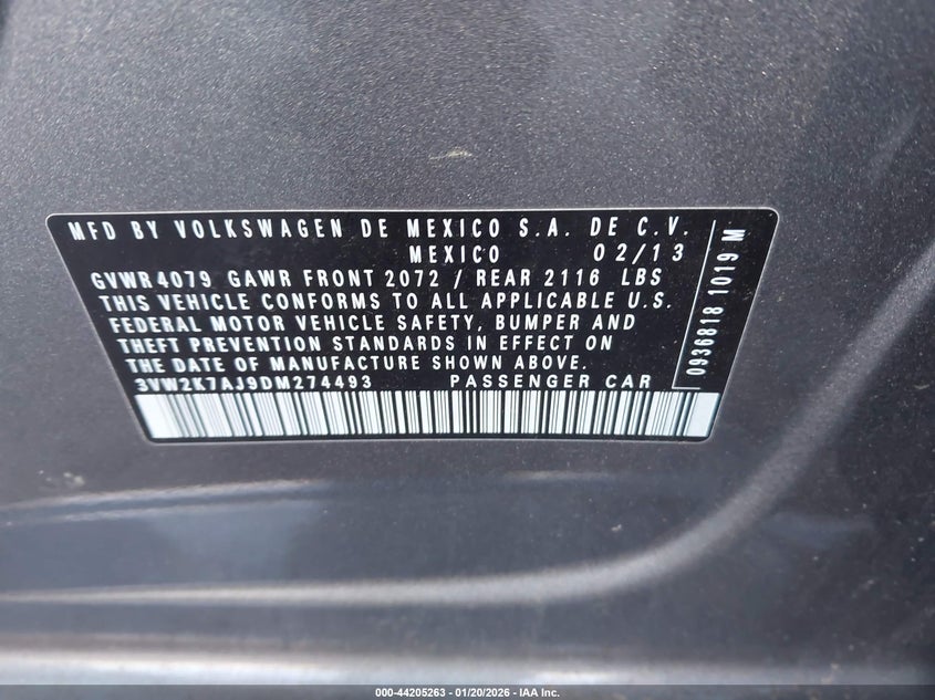 VIN: 3VW2K7AJ9DM274493