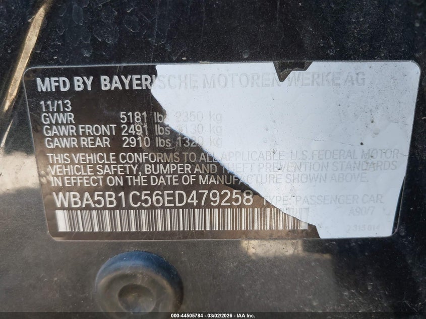VIN: WBA5B1C56ED479258