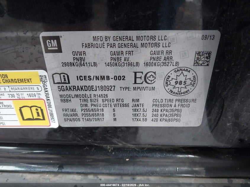 VIN: 5GAKRAKD0EJ180927